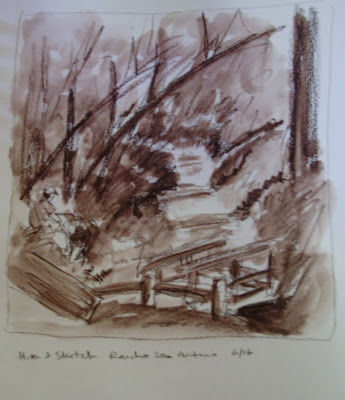 | Candy's sketch of one of the many bridges crossing the small stream. |